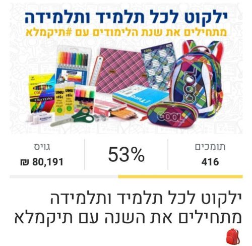 חודש בלבד לתוך פרויקט חזרה ללימודים וכבר גויסו 80,000 שקלים🙏🏼